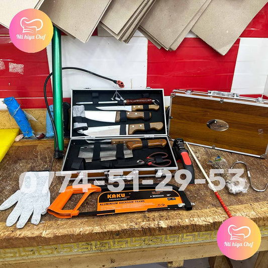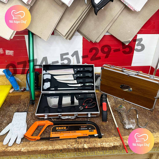 (R) SAC A COUTEAUX 100% HIGH CARBON + 3 Cadeaux (115) كل ما تحتاجه في الذبح والتقطيع في باك واحد
